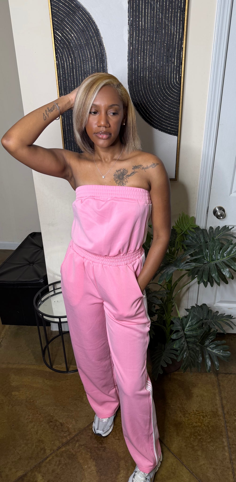 • Load image into Gallery viewer, Strapless Track Jumpsuit